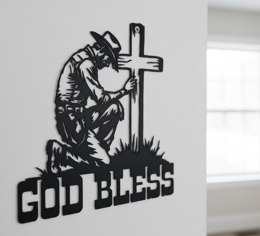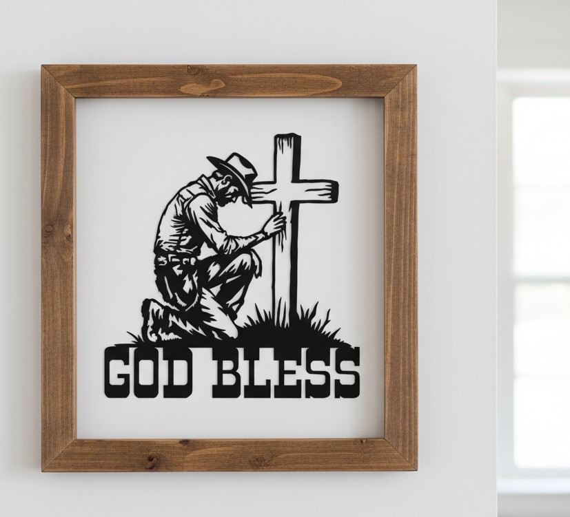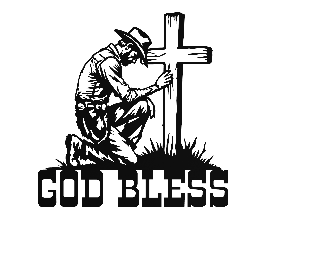 DXF and SVG file, God Bless Cowboys 18″ tall.