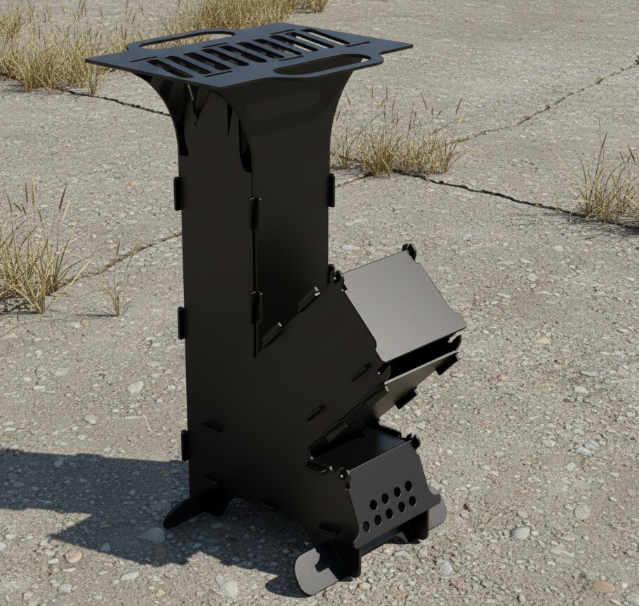 DXF and SVG file Rocket stove collapsible 10ga, 24in tall, fit to sheet 40x40in